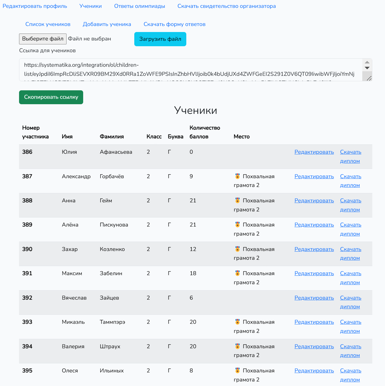 - Упрощение загрузки списка учеников (вместо ручного ввода реализовали загрузку данных из файла).