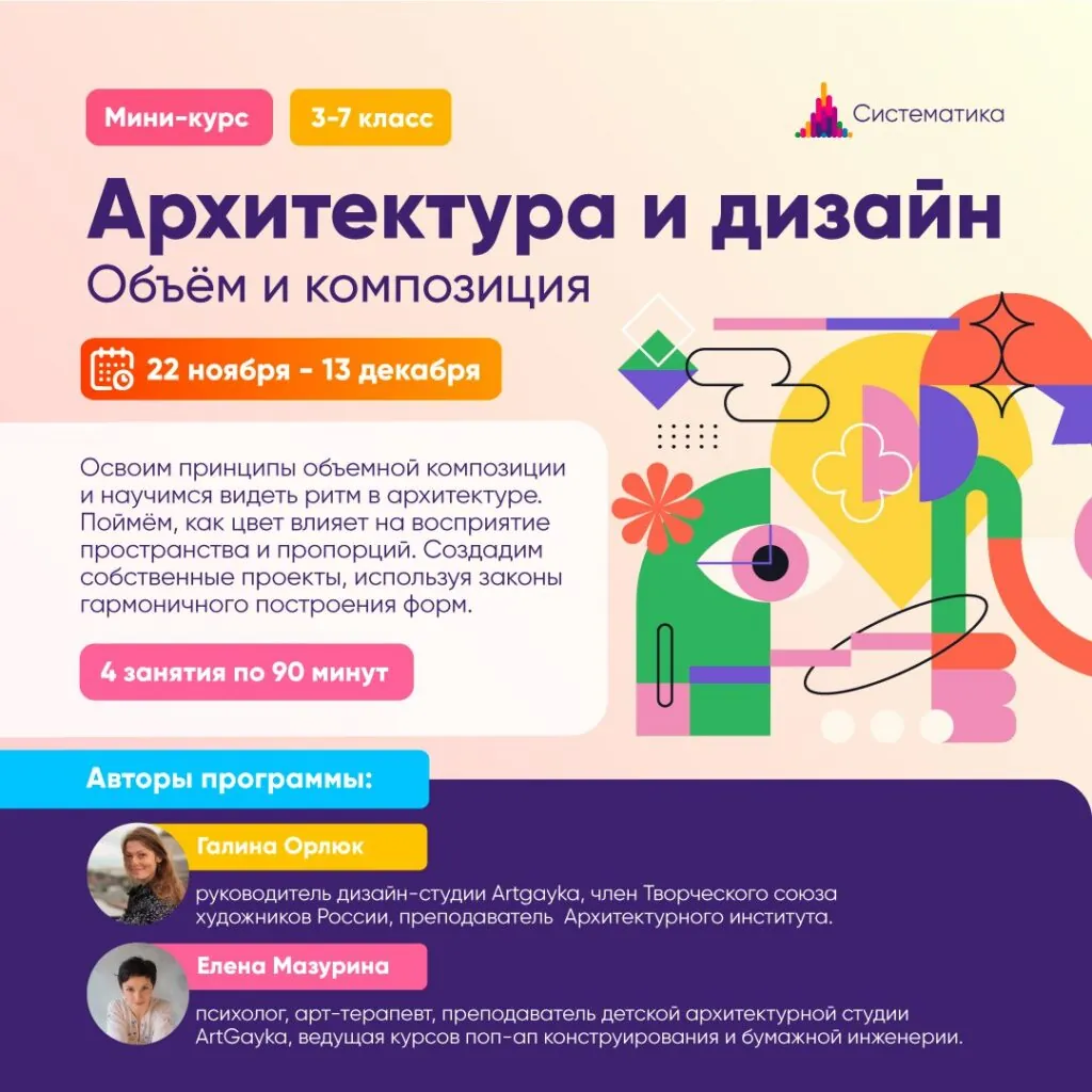 ΠΡΠΈΠ³Π»Π°ΡΠ°Π΅ΠΌ ΡΡΠ΅Π½ΠΈΠΊΠΎΠ² 3-7 ΠΊΠ»Π°ΡΡΠΎΠ² Π½Π° ΠΈΠ½ΡΠ΅Π½ΡΠΈΠ²Π½ΡΠΉ ΠΊΡΡΡ ΠΏΠΎ Π°ΡΡ ΠΈΡΠ΅ΠΊΡΡΡΠ΅ ΠΈ Π΄ΠΈΠ·Π°ΠΉΠ½Ρ Β«ΠΠ±ΡΡΠΌ ΠΈ ΠΊΠΎΠΌΠΏΠΎΠ·ΠΈΡΠΈΡΒ»! ✨