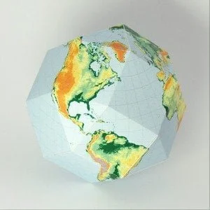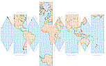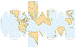 Карта мира на ромбокубоктаэдре. Гномическая проекция. Полюса на треугольных плоскостях