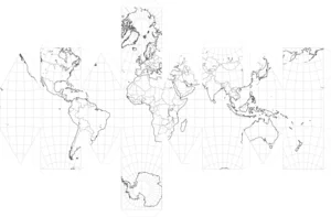 Карта мира на ромбокубоктаэдре. Гномическая проекция. Черно-белый вариант для раскрашивания