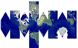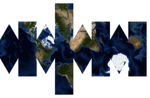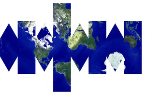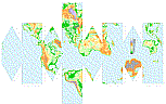 Карта мира на ромбокубоктаэдре. Гномическая проекция. Полюса на противоположных квадратных плоскостях
