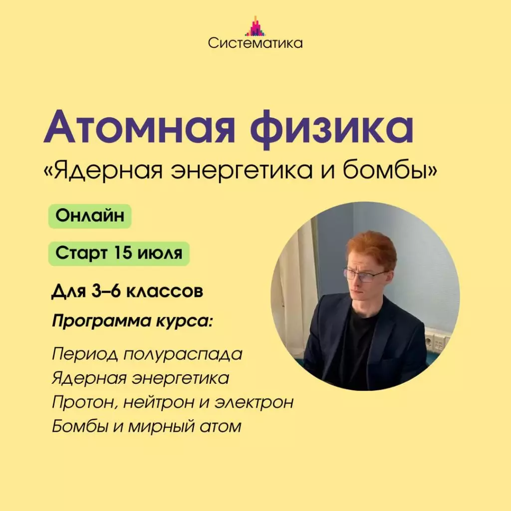 🔴15 июля стартует курс по Атомной физике «Ядерная энергетика и бомбы» для 3-6 классов.