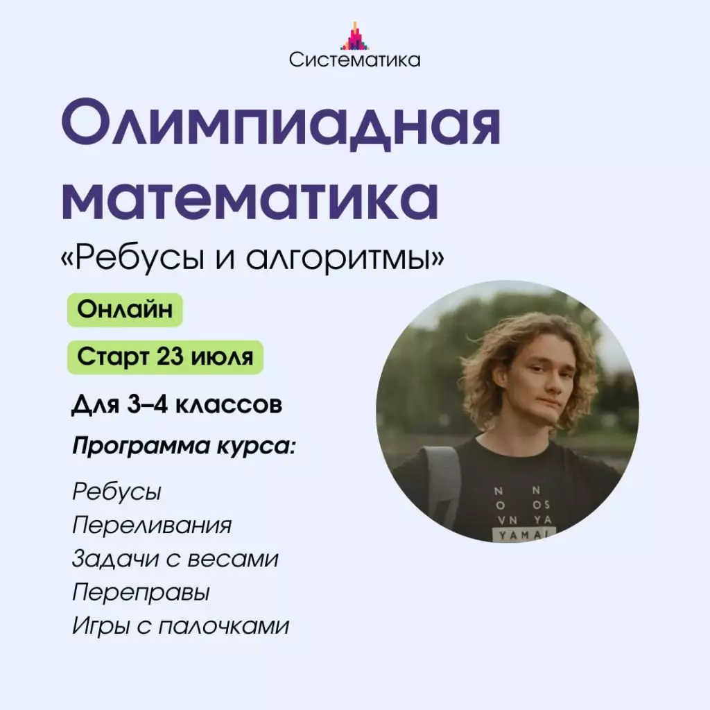 🔴23 июля стартует 5 модуль курса по олимпиадной математике «Ребусы и алгоритмы» для 3-4 классов с Евгением Тодоровым.