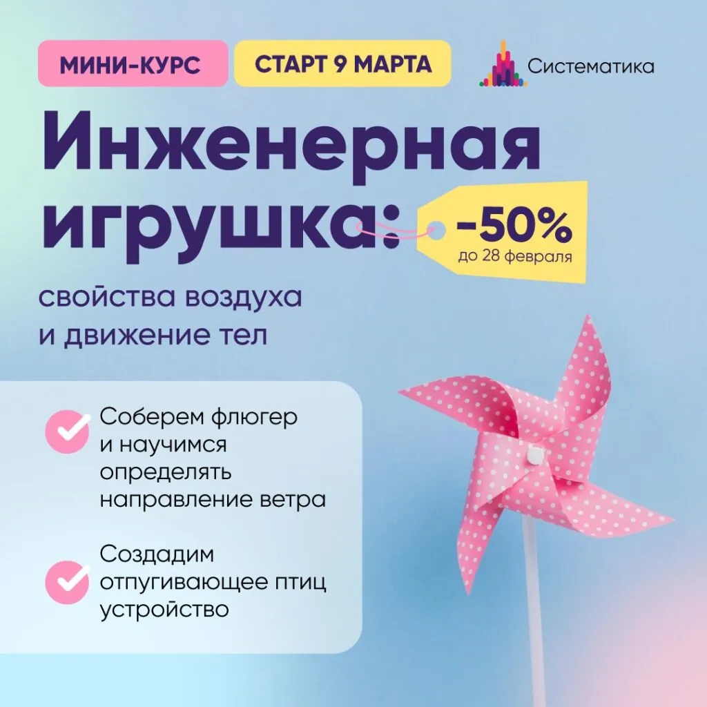 На занятиях научимся самостоятельно создавать различные подвижные модели из подручных материалов. Мы соберем флюгер и научимся определять направление ветра, возможно, создадим отпугивающее птиц устройство, которое точно пригодится на вашей даче.