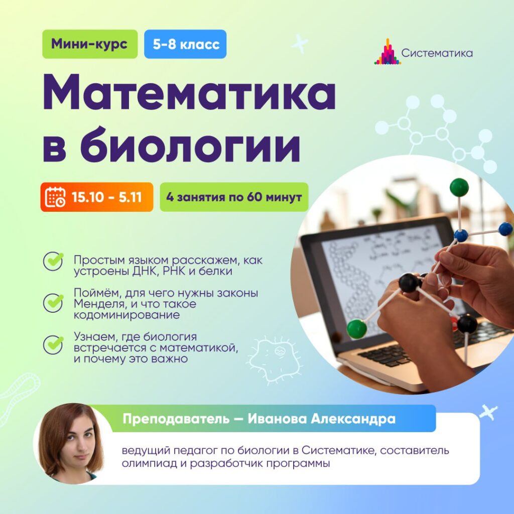15 ΠΎΠΊΡΡΠ±ΡΡ ΡΡΠ°ΡΡΡΠ΅Ρ ΠΊΡΡΡ ΠΏΠΎ Π±ΠΈΠΎΠ»ΠΎΠ³ΠΈΠΈ Π΄Π»Ρ 5-8 ΠΊΠ»Π°ΡΡΠΎΠ² Ρ ΠΠ»Π΅ΠΊΡΠ°Π½Π΄ΡΠΎΠΉ ΠΠ²Π°Π½ΠΎΠ²ΠΎΠΉ β Β«ΠΠΈΠΎΠ»ΠΎΠ³ΠΈΡ Π² ΠΌΠ°ΡΠ΅ΠΌΠ°ΡΠΈΠΊΠ΅Β».Β