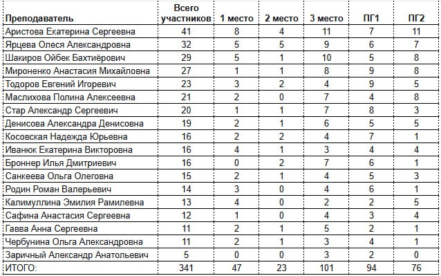 Π‘ ΠΎΠ³ΡΠΎΠΌΠ½ΡΠΌ ΡΠ΄ΠΎΠ²ΠΎΠ»ΡΡΡΠ²ΠΈΠ΅ΠΌ ΠΏΡΠ±Π»ΠΈΠΊΡΠ΅ΠΌ ΡΠΏΠΈΡΠΎΠΊΒ Π½Π°ΡΠΈΡ ΡΡΠΈΡΠ΅Π»Π΅ΠΉ-ΡΠ΅ΠΌΠΏΠΈΠΎΠ½ΠΎΠ², ΡΡΠΈ ΡΡΠ΅Π½ΠΈΠΊΠΈ ΠΏΠΎΠΊΠ°Π·Π°Π»ΠΈ Π±Π»Π΅ΡΡΡΡΠΈΠ΅ ΡΠ΅Π·ΡΠ»ΡΡΠ°ΡΡ Π² ΡΡΠΎΠΌ ΡΡΡΠ΅, ΡΠΌΠΎΡΡΠΈΡΠ΅ Π² ΡΠ°Π±Π»ΠΈΡΠΊΠ΅.