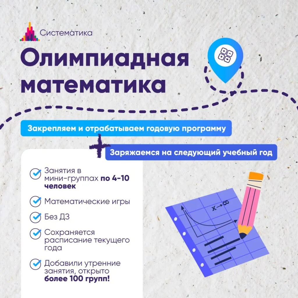 5 смен=30 занятий=годовая программа олимпиадной математики ❗️За лето можно пройти программу за год, подготовиться к олимпиадам и прокачать свой уровень.