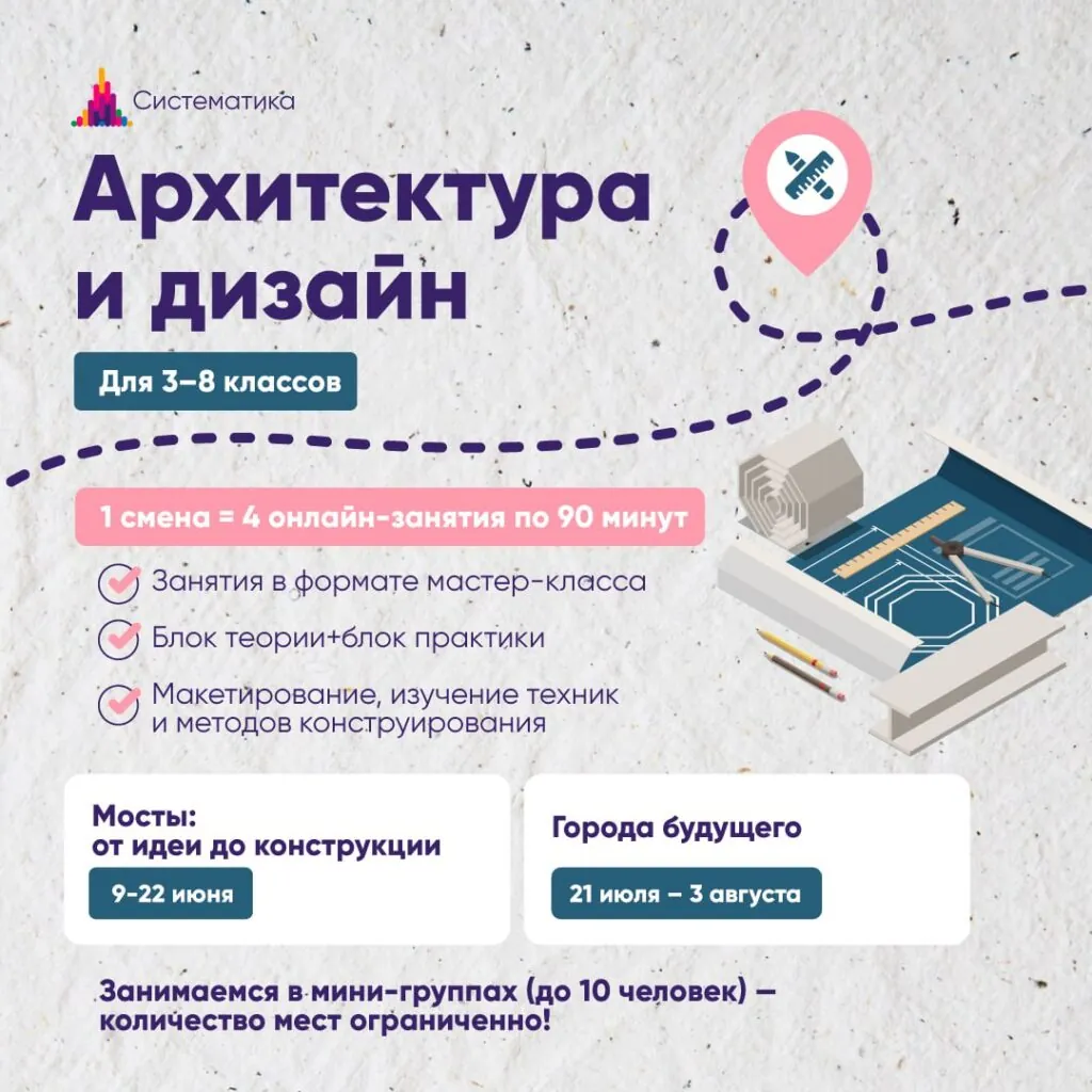 До лета осталось 44 дня! Пора строить планы на каникулы. Не беспокойтесь, мы уже все придумали! Летом в Систематике помимо стандартных занятий по расписанию на курсах и кружках будет работать 5 смен интенсивов. Для каждой смены мы подготовили особую программу.