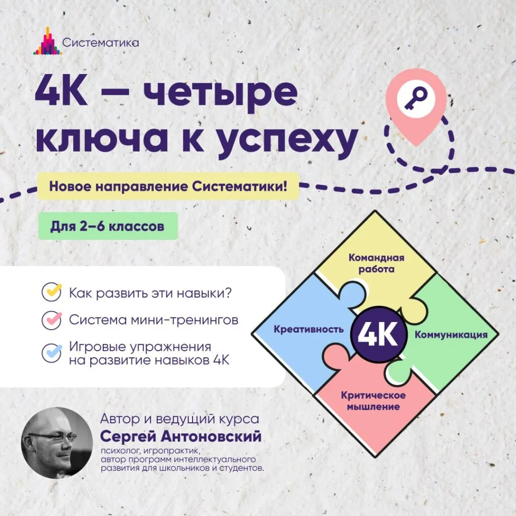 На авторском курсе психолога и игропрактика Сергея Антоновского дети будут учиться этим важным навыкам с помощью особых методик и упражнений.