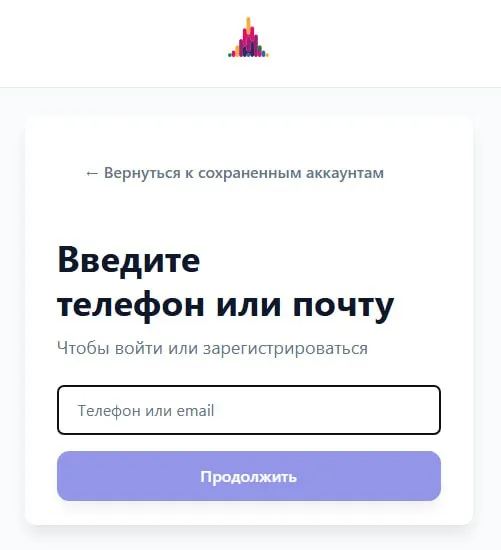 Введите номер телефона → выберите аккаунт, привязанный к этому номеру → код придёт в Telegram → введите его в окно подтверждения → вы в кабинете.