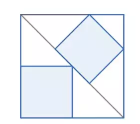В большой (белый) квадрат вписали два синих так, как показано на рисунке. Найдите отношение площади большего синего квадрата к меньшему.