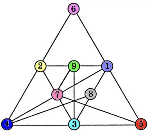 На картинке ниже цифрами обозначены люди: 1 — Егор; 2 — Лиза; 3 — Маша; 4 — Саша; 5 — Олег; 6 — Герман; 7 — Полина; 8 — Карина; 9 — Тимофей. Линии между цифрами показывают кто с кем дружит. Определите у кого больше всего друзей.