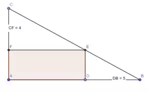 Внутри прямоугольного треугольника ABC нарисован прямоугольник ADEF, причём известно, что CF = 4, а DB = 5. Чему равна площадь прямоугольника ADEF?