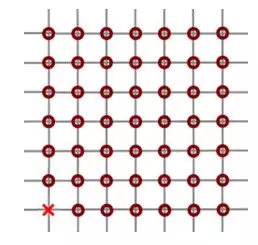 Рон Уизли (обозначен красным крестиком) может кинуть квоффл в любое кольцо (если на линии нет других колец). После попадания в кольцо мяч тут же отлетает влево или вправо под углом 90°. В какое максимальное количество колец Рон может забить голы за один бросок (если ему сильно повезёт)?