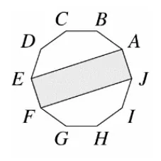 На рисунке изображен прямоугольник AEFJ внутри правильного десятиугольника ABCDEFGHIJ. Найдите отношение площади прямоугольника к площади десятиугольника