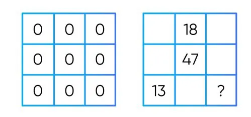 Учитель Марка нарисовал на доске сетку размером 3∗3, с нулем в каждой ячейке. Затем ученики по очереди выбирали квадрат размером 2∗2 и добавляли 1 к каждому из чисел в четырех ячейках. Через некоторое время сетка стала выглядеть как на рисунке справа (часть чисел в ячейках стерлась). Какое число должно быть в ячейке со знаком вопроса?