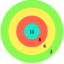 Митя играл в дартс и сделал 3 броска дротика, каждый раз попадая в поле нового цвета. За попадание в каждое поле даётся столько очков, сколько написано в этом поле на картинке. Всего он набрал 22 очка. В поле какого цвета он не попал?