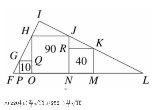 Внутри квадратов записаны их площади. Какова площадь треугольника, внутри которого они находятся?