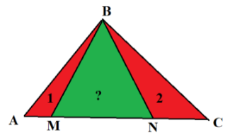В прямоугольный треугольник ABC с прямым углом B вписан правильный треугольник MBN оказалось, что площади красных треугольников на рисунке равны 1 и 2. Чему равна площадь прямоугольного треугольника?